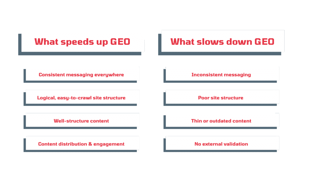 Understanding what accelerates or slows down your GEO efforts provides the context for planning a realistic timeline. With clarity, consistency, and credibility as your guiding principles, you can strategically implement each phase to maximize AI visibility.
