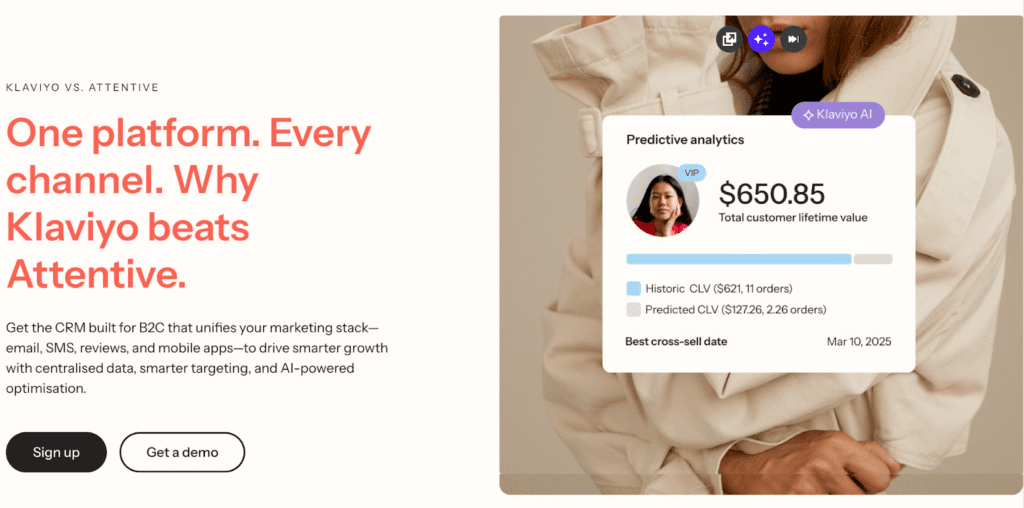 You can also include a quick summary verdict or positioning statement here, as Klaviyo does by emphasizing “centralized data, smarter targeting and AI-powered optimization.”