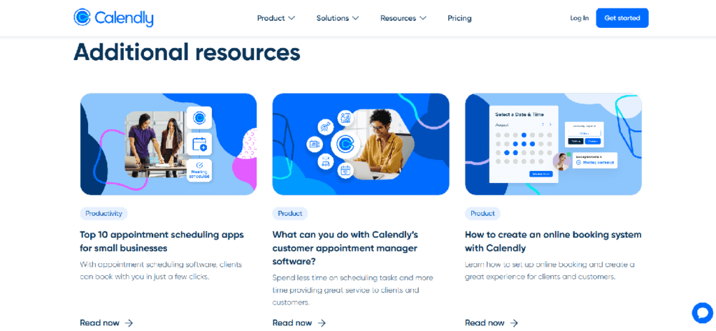 Calendly feature page is an example of this approach. After positioning the product for a specific audience, the page introduces an “Additional resources” section that links to related guides and feature explanations. These links deepen understanding without interrupting the main page flow, allowing different buyer types to explore at their own pace. This keeps the feature page focused while still creating natural paths into the rest of the product and content ecosystem.